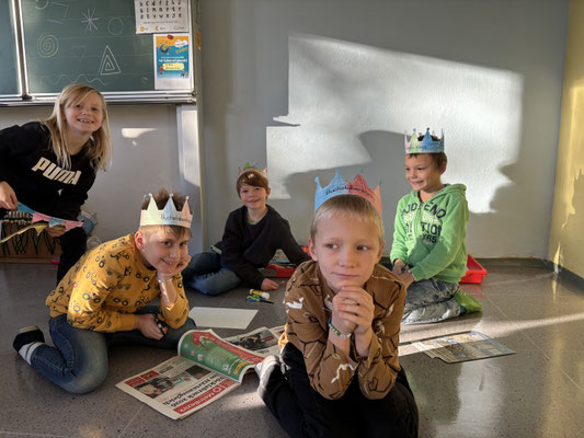 Bevor die Herbstferien starteten, feierten die Kinder der 2. Klassen endlich das Buchstabenfest. An verschiedenen Stationen wurden Wörter gebaut und gehüpft, Buchstaben erfühlt, Buchstabenspiele gespielt, Armbänder gefädelt und Kronen gebastelt. Als festlicher Abschluss haben alle Buchstabenköniginnen und Buchstabenkönige gemeinsam Buchstabensuppe gegessen. Das war ein tolles Fest, welches wir sicher nicht so schnell vergessen werden.