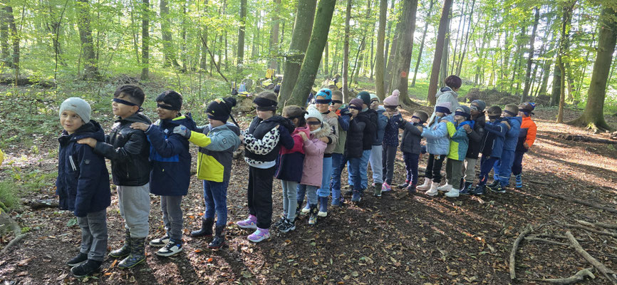 Die 1b Klasse verbringt einen Vormittag im Wald und lernt sich so noch besser kennen.