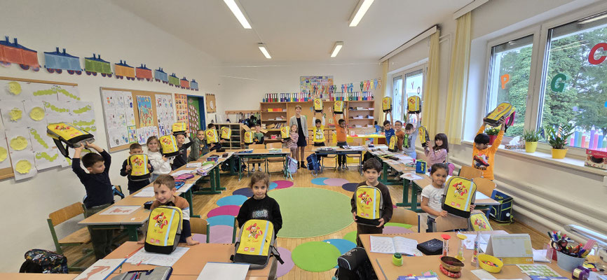 Unsere ErstklässlerInnen freuen sich über ihren Sumsi Rucksack.