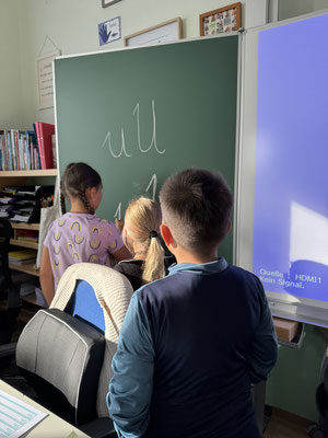 In der 2b ist gerade richtig viel los! Wir üben fleißig die Schreibschrift und freuen uns, wenn die Buchstaben immer schöner werden. Außerdem trainieren wir das Einmaleins - mit Spielen, Liedern und kleinen Übungen macht das Rechnen gleich viel mehr Spaß!
